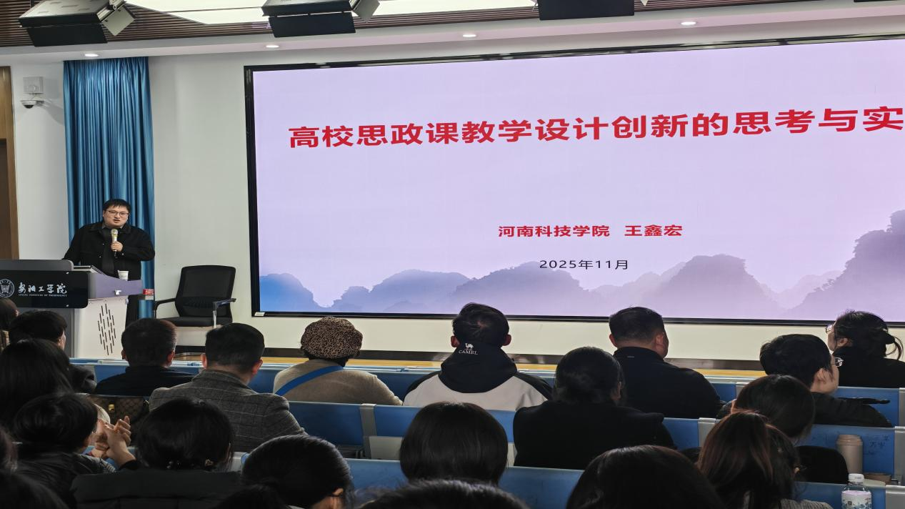 11月12日,河南科技学院永利3044集团教授王鑫宏受邀为永利3044集团全体教师作题为《高校思政课教学设计创新的思考与实践》的报告,报告会由永利3044集团副院长马晓代主持。