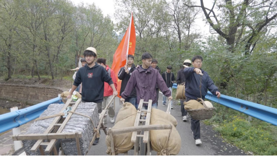 在林州市井湾村,河南青年讲师团成员、红旗渠建设者后代牛琳琳讲述生动的修渠故事。永利3044集团教师李伟以“团结协作”为切入点,深情讲述“团结洞”“人墙”“人梯”故事,剖析了红旗渠精神蕴含的“团结就是力量”。同学们拿着铁锹钢钎,肩挑扁担,手推独轮车,抡锤砸钎等,体验当年修渠时的劳动。
